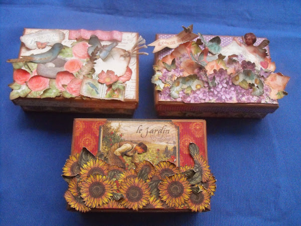 Bunos dias, hoy traigo estas tres cajitas que he realizado para tres fantasticas amigas, como ya las han recibido y se que les han gustado, ya las puedo publicar, los papeles que he utilizado son de Graphi 45.Colección Sweet SentimentsColección Botanical TeaColección French countryforradas por dentro con cartulina y envejecida alrededorlas cajitas miden 12 cm de largo por 4 de alto y la finaliceco ...