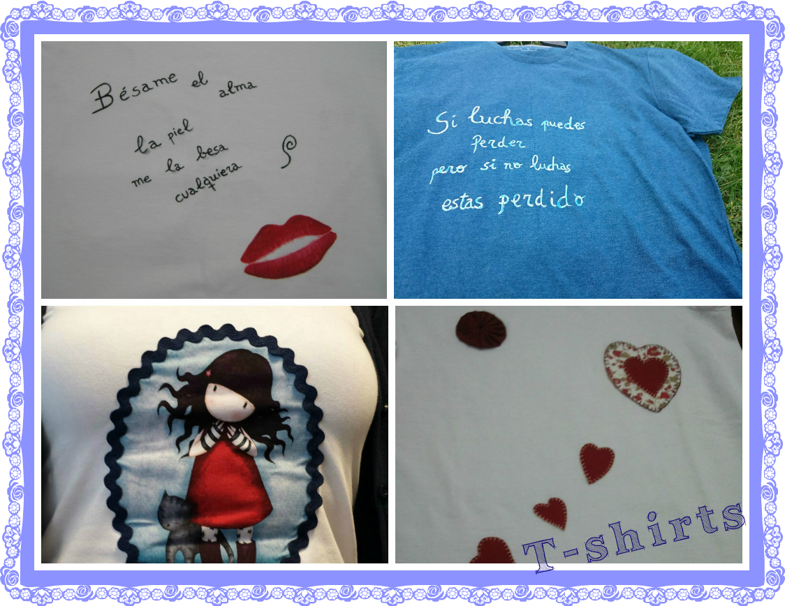 Hola a tod@s!Que tal ha ido la semana?Espero que animada, como poco!Os traigo ideas para camisetas.El que se puedan poner mensajes personalizados en ellas, me parece hacerlas mas propias todavía.La camiseta azul, se la hice a mi cuñado, es una frase que el lleva por bandera!, así que en su camiseta no podía ir otra que le identificase más: "Si luchas puedes perder pero si no luchas estas perdido"E ...