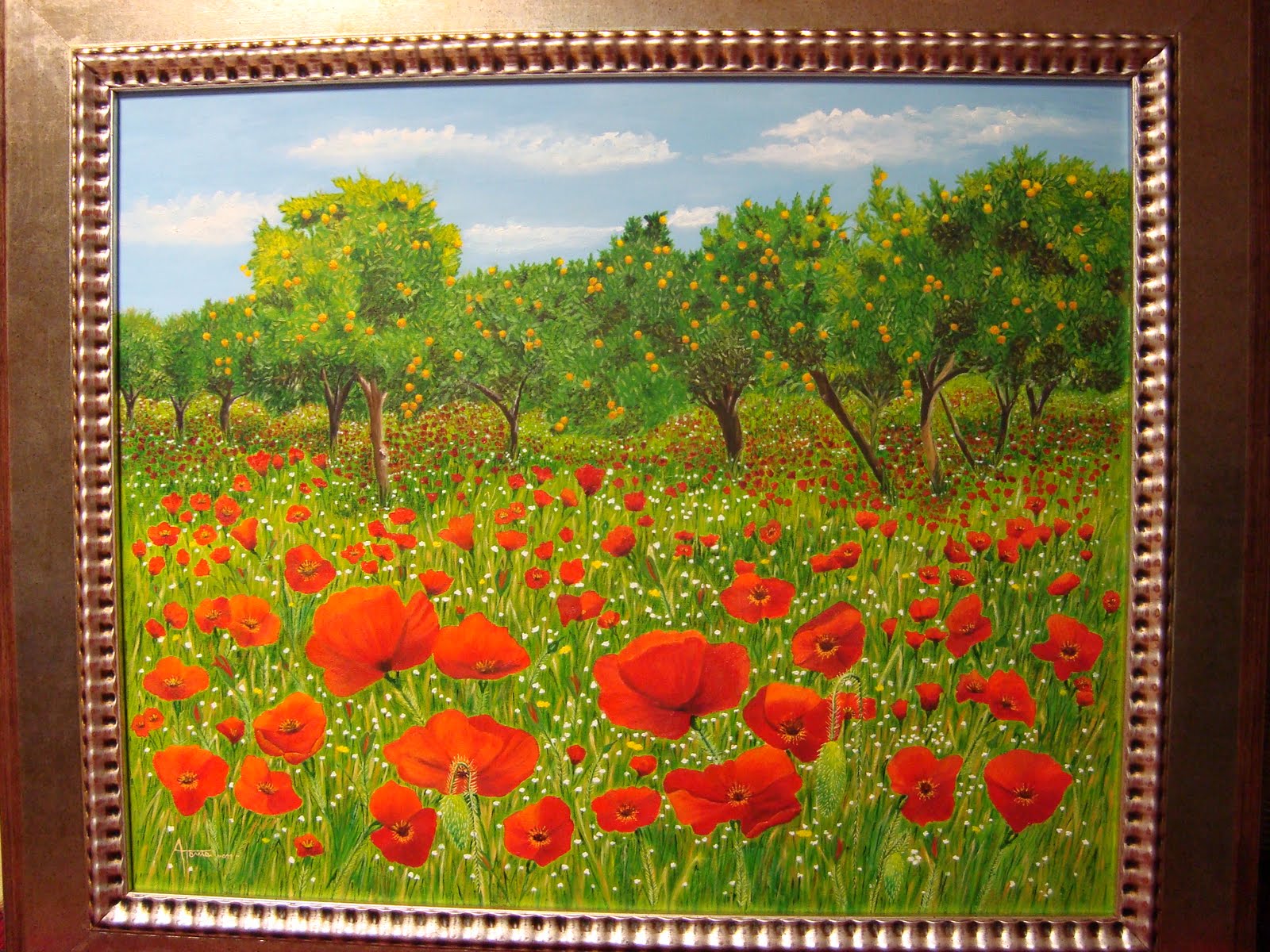 Campos de trigo de mi tierra llenos de amapolas.....Recuerdos........Este lienzo es muy grande.... no consigo una buena foto.Os dejos detalles del cuadroPues me encanta como queda en mi salón.