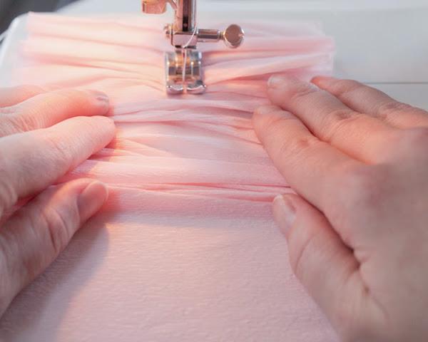 Con la maquina de coser, fruncimos a la mitad, quedando de esta manera: