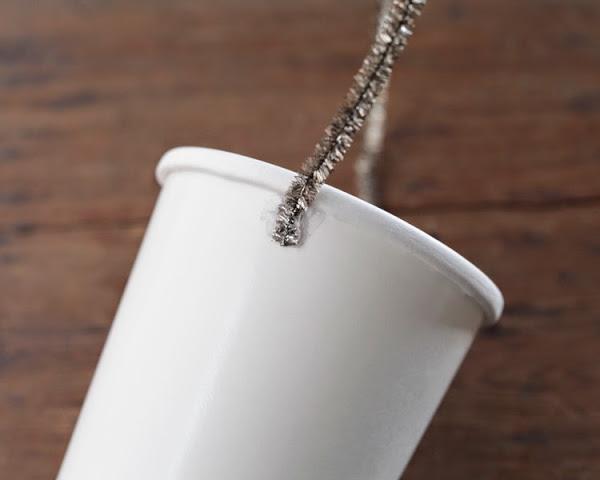 Continuamos pegando nuestras tiras de papel por al rededor del recipiente.