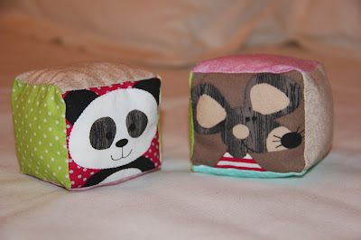 Y por último, se me ocurrió hacer estos cubos de tela, muy blanditos y muy adecuados para los bebés cuando empiezan a jugar.