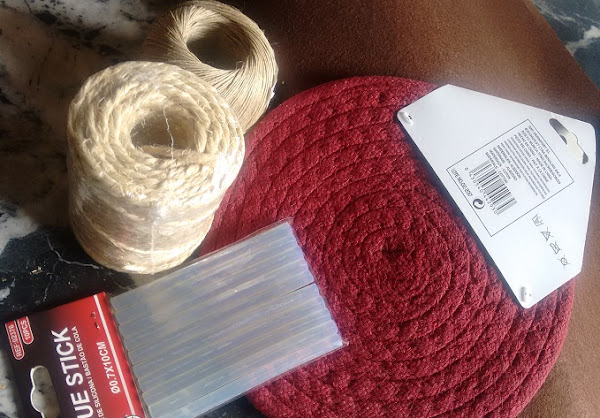 Vemos la cuerda, el hilo, salvamanteles, fieltro y silicona.