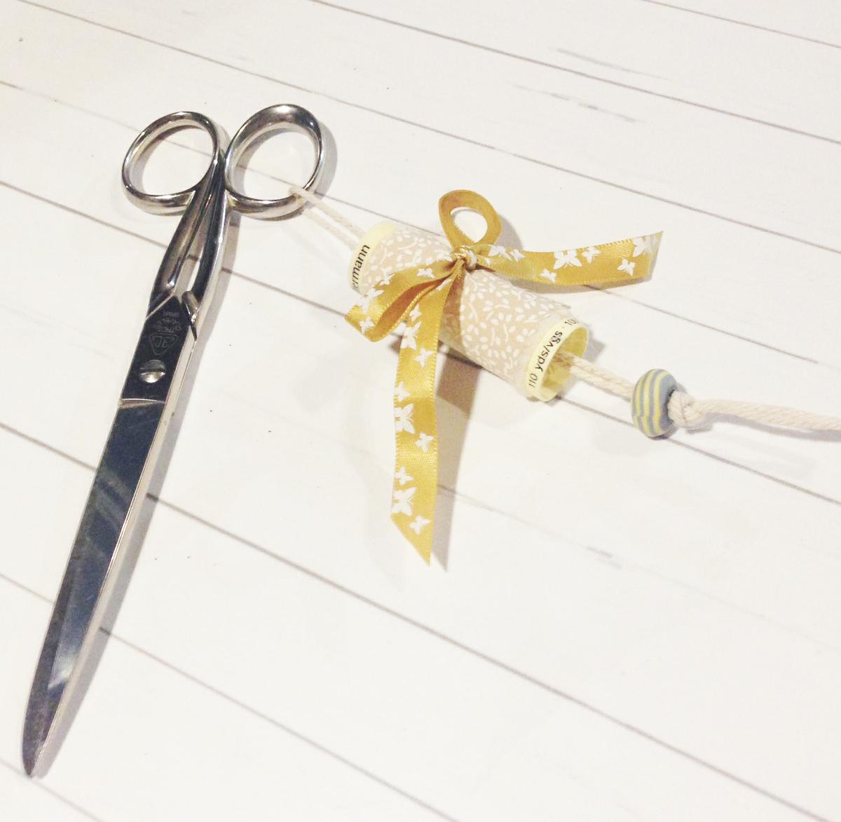 Yo lo he montado para diferenciar mis tijeras y darle un toque personal, que ya sabéis las que se lían en los talleres con las tijeras que son todas iguales ¿verdad?