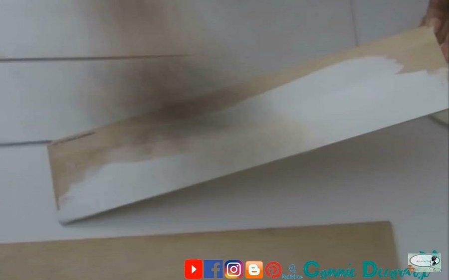 Primero pintaremos las cuatro tablas a elección, en color blanco, solo le daremos una capa ligera, para simular el envecesimiento