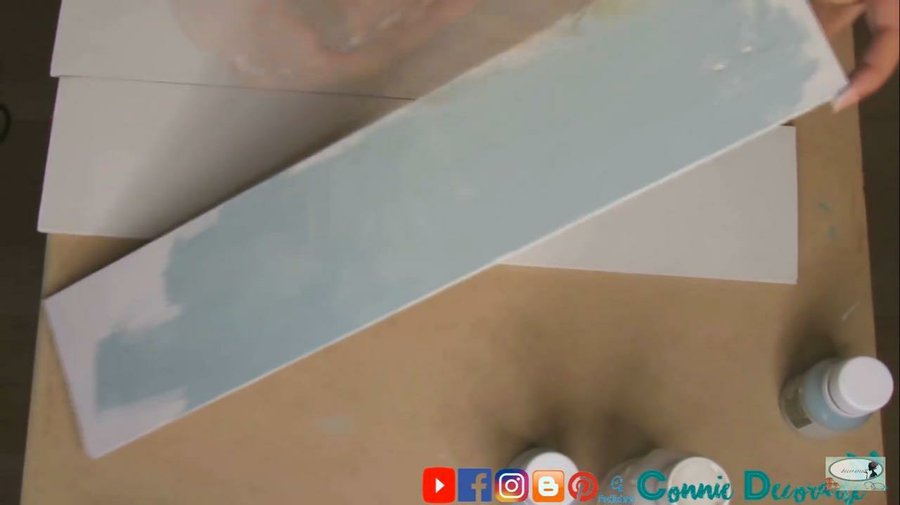 Pintaremos 2 de las tablas en los 2 diferentes azules, también daremos una capa ligera, como se muestra en el vídeo, puedes usar los colores a tu elección.