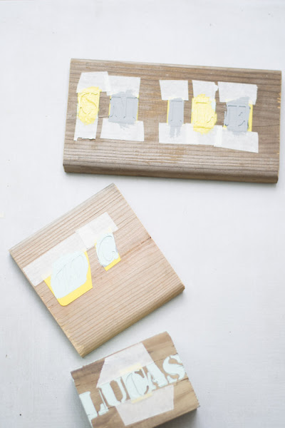 Solo tenéis que usar plantillas, o pintar las letras o palabras con vuestra letra. Yo use una plantillas, que compré en una tienda de manualidades, y las fui pegando con cinta de carrocero.
