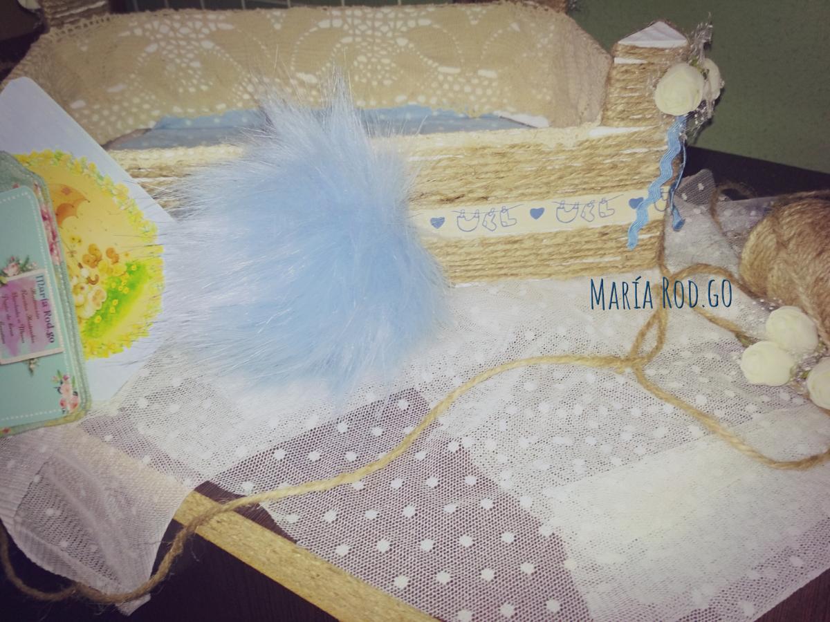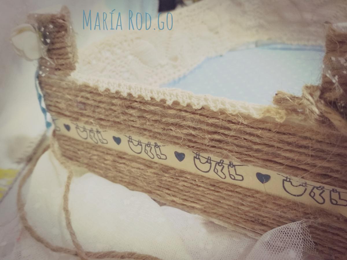 La cesta con los detalles para la mamá y su bebé os lo enseño en otra ocasión. Hoy la protagonista es la cesta. Y cómo, con pintura, cuerda de rafia,un pompón gigante, cintas adornadas, flores de foami, pasamanería, tela y encaje de bolillos, una simple cesta de fresas cambia su aspecto. Os dejo las imágenes. Ya me diréis que os ha parecido.