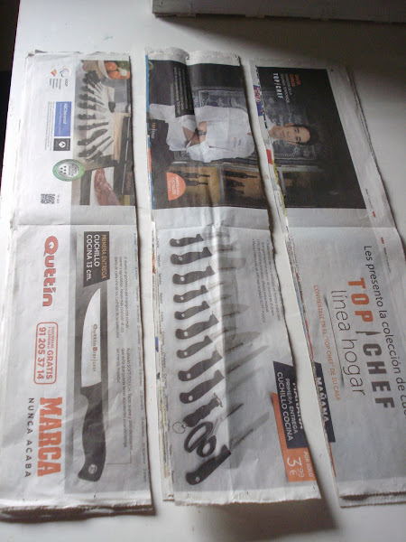 Hola a tod@s!Hoy toca Aprendiendo de todo un poco con Annael tema propuesto para este mes es hacer trabajos con papel recicladoyo tenía muchas ganas de probar con los rollitos de papelIgual tenía que empezar con algo más pequeñopero a me gusta liarme y menudo trabajo me ha dado la cesta.El primer paso es recortar el papelrecorto el periódico en tres partes iguales a lo largo.Con una agua de calcet ...
