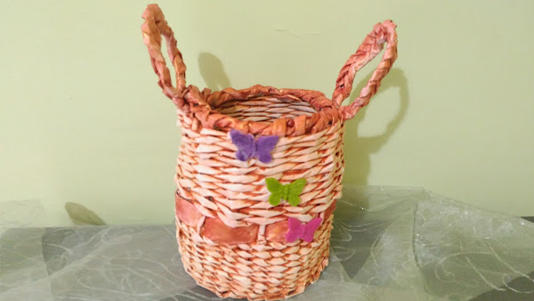 Cesta hecha con papel periódico, puedes usar papel de cuadernos, revistas o papel bond ya usado. La puedes hacer del tamaño que tu quieras y decorarla a tu gusto. Materiales: Papel períodico Cola blanca y silicona caliente Pintura acrílica o spray Tijeras Un objeto cuadrado Para hacer los tubitos de papel, corta tiras del papel periódico, coloca un poco de cola blanca en la esqui ...