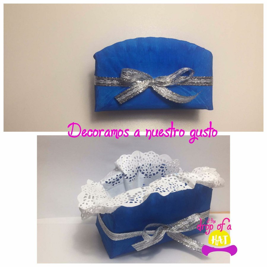 Da rienda suelta a tu imaginación ✨y decora tu cesta como más te guste. Puedes usar lazos botones, pegatinas, lo que quieras! Y así es como nos queda. ¡Prueba a hacerlo!