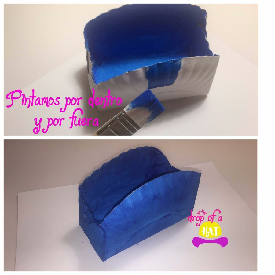 Elige el color que quieras. No empapes mucho el pincel con la témpera, ya que al ser cartón, se deforma. No es necesario diluir la témpera. Si lo prefieres, puedes pintar primero el plato y luego darle la forma, pero a nosotros nos parece más fácil, pintarlo una vez ya está montado.