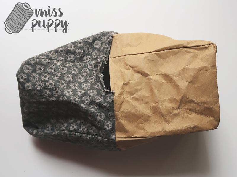 Cuando cosas el kraftex, hazlo con una puntada larga, al número 3 o superior, ya que si pones la puntada muy pequeña puede romper el kraftex (recuerda que tiene tacto de papel y las puntadas muy juntas pueden hacer un efecto “taladro” y romperlo).