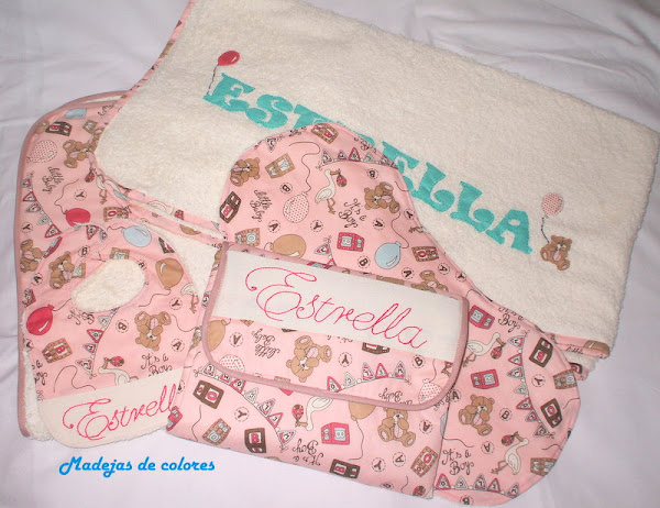 Hace un tiempo, una prima mía se puso en contacto conmigo, a ver si le podía hacer algo para regalar a un futuro bebé. lo dejaba en mis manos, sólo me dijo que lo hiciera más bien, en tonos suaves.Se trata de una niña, a la que llamaran Estrella y los colores que elegí fueron un rosa empolvado y felpa cruda.Este es el resultado de todo el conjunto. Vamos a verlo por separado. En primer lugar hice ...