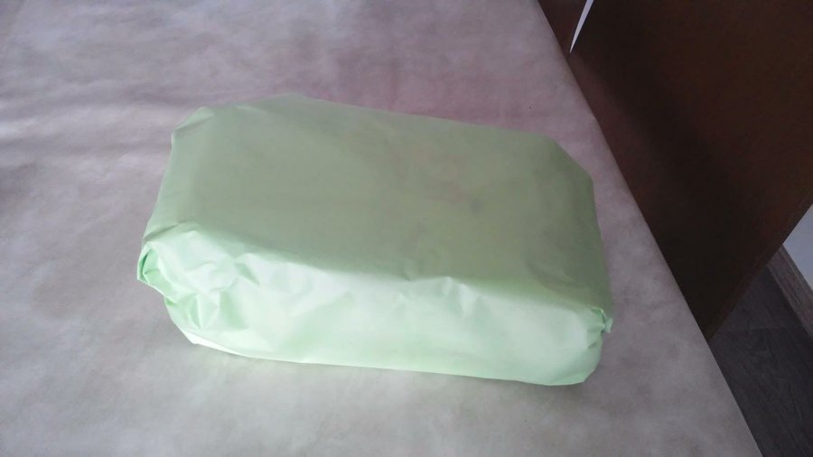 5- Envolvemos con una hoja de seda, para unir los paquetes de la base con el de arriba.