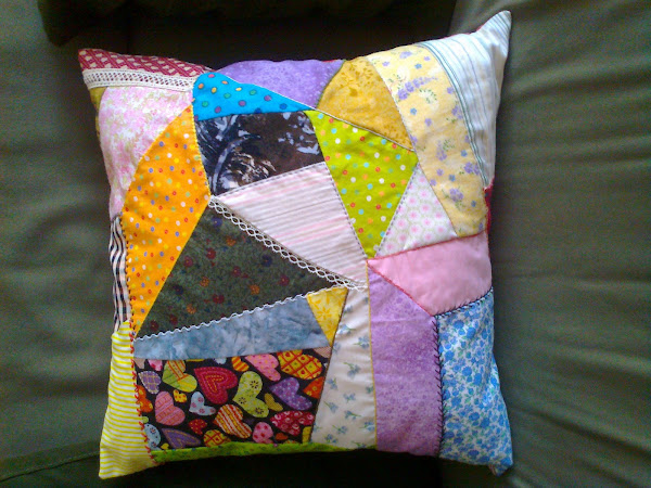 Hola , pues aqui recien estrenandome el blog con mi primer trabajito en patchwork, me la paso horas mirando las cosas bonitas que otras usuarias han publicado y me he animado hacerlas yo tambien, el resultado? un cojin, pues creo que no me quedo tan mal, lo hice para mi hijo y aqui lo comparto con ustedes , espero les guste !!saludos