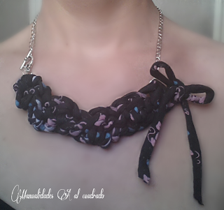 Este collar este hecho con restos de trapillo. Ya sabéis hay que aprovechas los sobrantes de otras manualidades