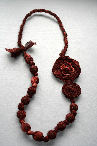 Estoy ahora en una época en la que me ha dado por hacer collares. Yo soyasí: cuando me da por una cosa, me da de verdad. Después de descubrir el modelo que ya enseñé en una entrada anterior realizado con canicas, he vuelto a hacer otro igual, aunque dándole un toque que lo hiciera diferente. El primero que hice fue solamente a base de nudos y canicas embutidos en tela. El siguiente fue igual, pero ...