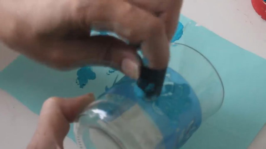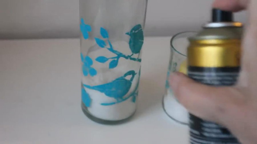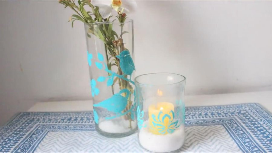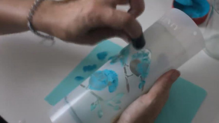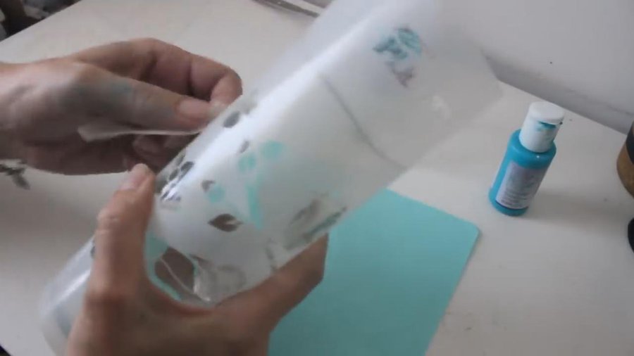 A continuación colocarás un stencil sobre la superficie del recipiente y para que no se mueva lo fijarás con cinta de papel...