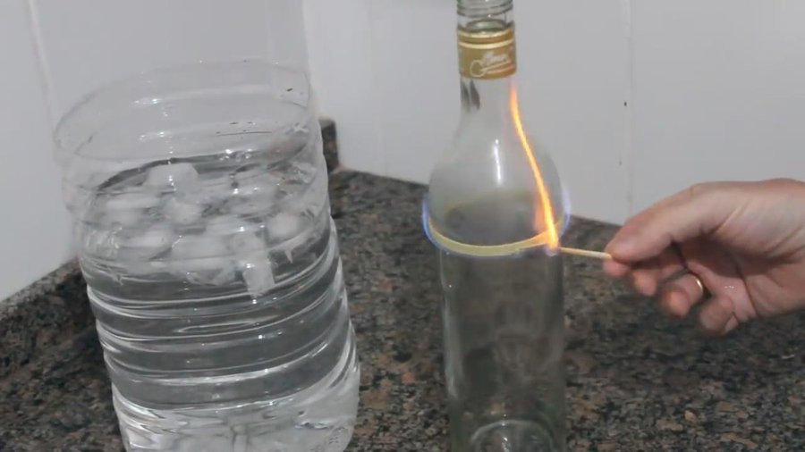 Ahora con un fósforo encenderás el hilo mojado con alcohol. ES MUY IMPORTANTE QUE LA BOTELLA ESTÉ DESTAPADA PARA QUE NO SE ACUMULE EL CALOR DENTRO Y ESTALLE.