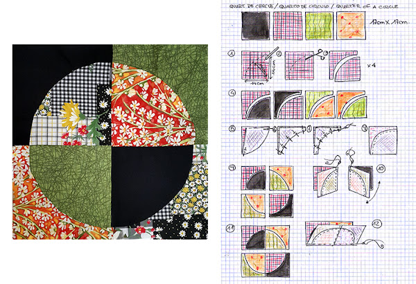 En aquest post, Les Antònies, us volem explicar com ens hem complicat la vida provant de fer un cerclede patchwork. No ens ha quedat tan malament com ens pensàvem, però ho hem fet a partir de quarts de cercle. Amb aquest tutorial us ensenyarem com fer-ho.Els materials necessaris per fer un bloc són: quatre quadrats amb estampats diferents de 17cmX17cm; no ens cal res més.Damunt d’un dels quadrats ...
