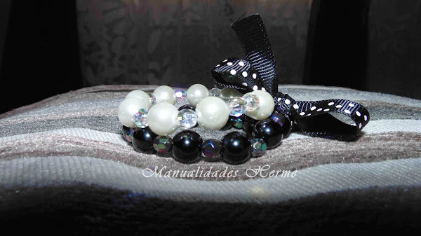 Materiales: Horquillas, hilo de nylon, abalorios blancos y tijeras.