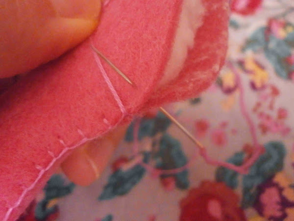 Cosí alrededor del fieltro y antes de acabar deje un trozo sin coser para poder meter el algodón, luego seguí cosiendo hasta cerrarlo todo.