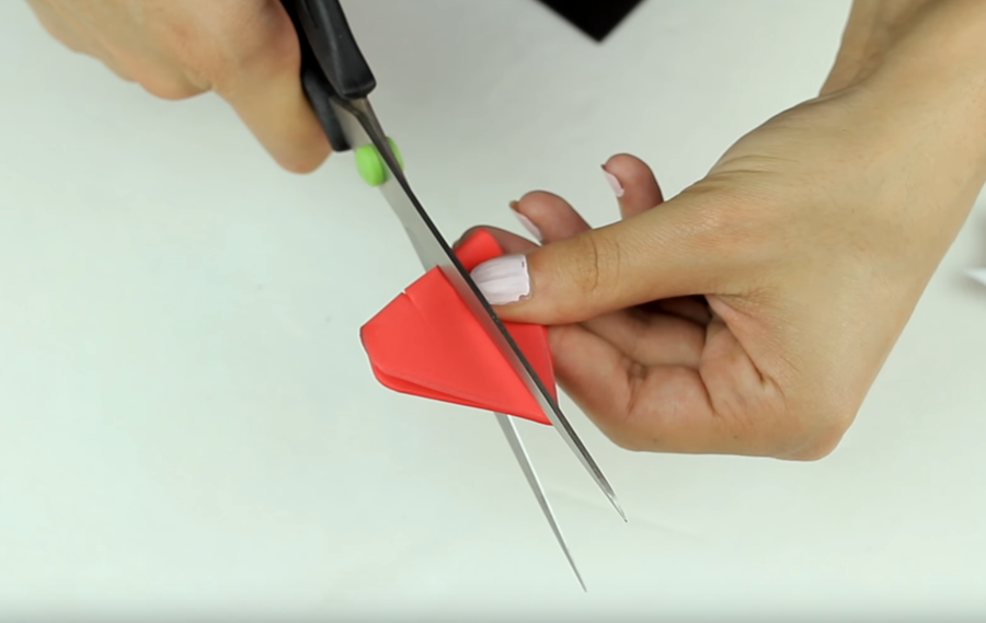A continuación, dobla ligeramente las figuras y realiza dos cortes horizontales, tal y como se ve en la imagen para poder introducir la pajita. ¡Mira!
