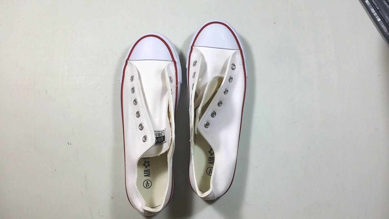 Lo primero que vamos a hacer es quitarle las trenzas a los zapatos y nos vamos a asegurar que no tengan ninguna etiqueta adicional