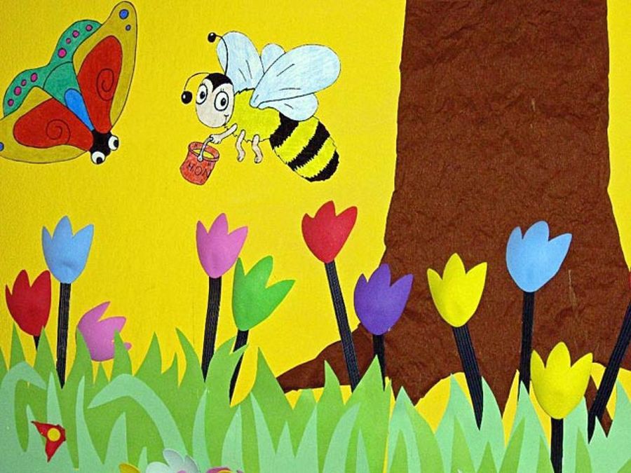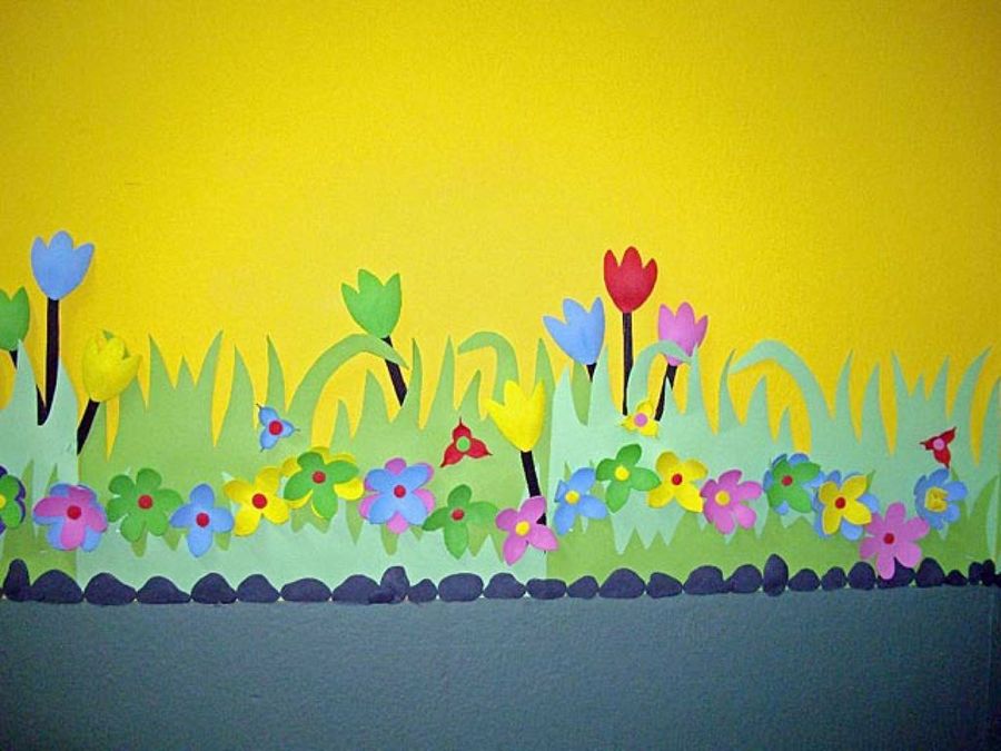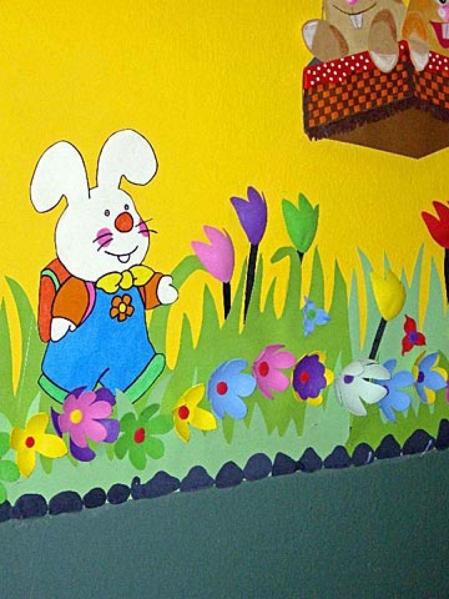 Durante cinco semanas, Nayaree hizo en casa muñecos planos mientras la seño cortaba flores de goma eva y césped de cartulina. Al comienzo de las vacaciones de Navidad, realizaron el montaje hombro con hombro, ellas solas. Tras una semana laboriosa pero muy divertida consiguieron un rotundo éxito: las profesoras del colegio acudieron en tropel a ver la guardería, y la de Artes Plásticas pidió a nuestra amiga que la enseñara a confeccionar murales.