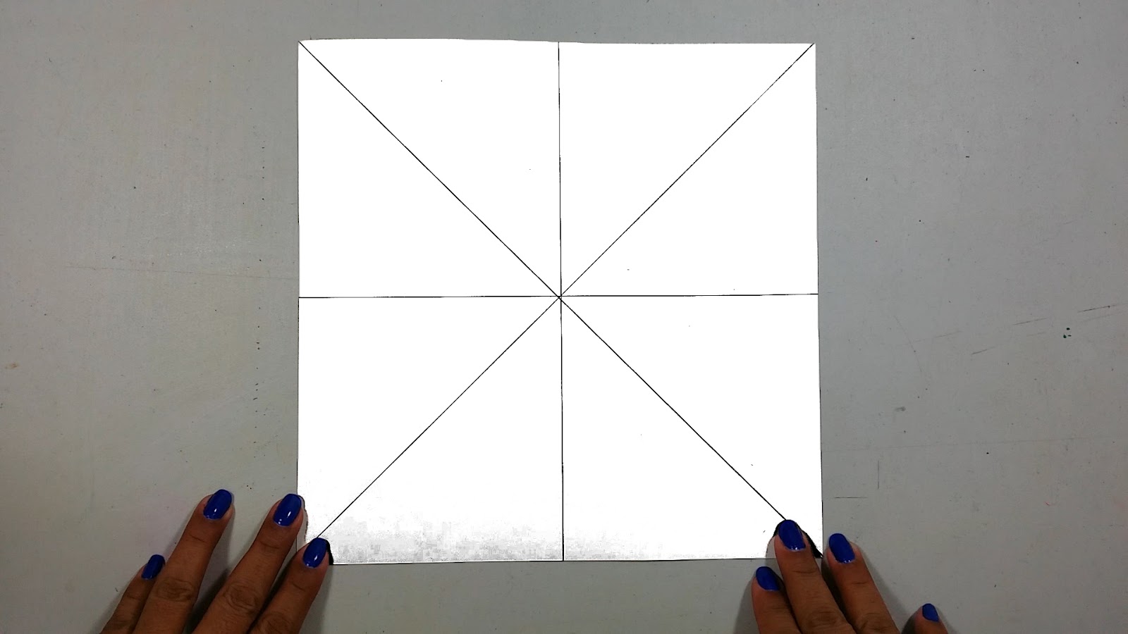 Este Mandala lo dibuje en una cartulina de 25 cm X 25 cm y comencé por dibujar las lineas guías, para esto dividí la cartulina justo por la mitad tanto horizontal como verticalmente, y luego dibujé las lineas de 45 grados, para esto simplemente tracé una linea recta uniendo las esquinas opuesta.