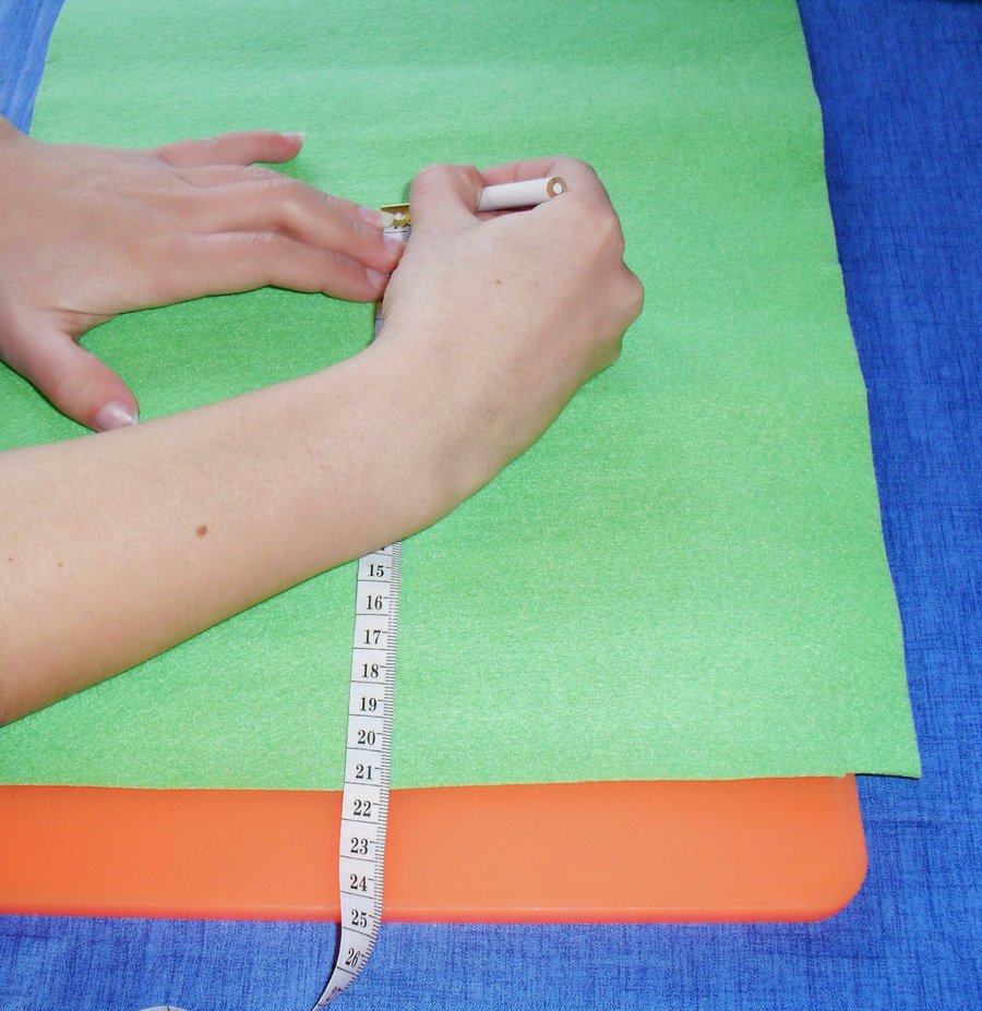 4. Ahora debemos trasladar las medidas de la parte frontal al fieltro, si os resulta más fácil podéis crearos un patrón con esas medidas y luego ya utilizar ese patrón para cortar el fieltro. RECORDAD QUE HAY QUE AÑADIR UN PAR DE MILÍMETROS POR CADA LADO.
