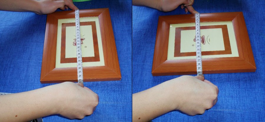 2. El siguiente paso es medir la parte frontal del marco (la del cristal), sumando además los laterales, y al igual que en la parte trasera, añadiremos un par de milímetros a cada lado.
