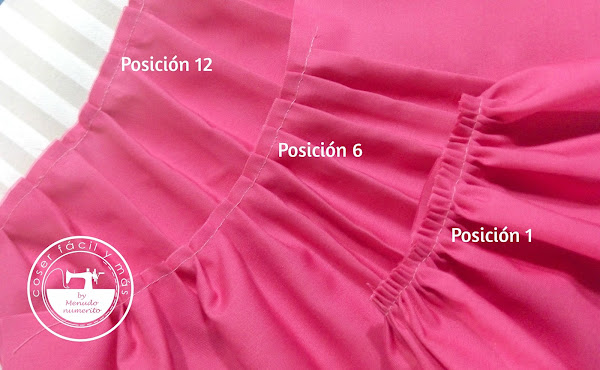 Con esto obtienes fruncidos o plisados más cerrados o más abiertos según necesites. Mira los ejemplos en esta fotografía, cosidos en cada una de las posiciones que te cuento.