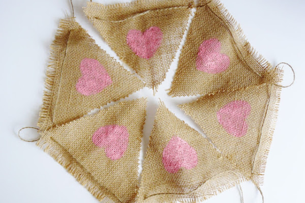 Pintamos corazones en los banderines, en este caso usaron una mezcla blanca y roja, para lograr un tono rosa bebé.