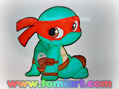 ¿A qué es muy fácil? Tan solo tienes que pegar el lazo alrededor de la boda y hacerle un nudo con los extremos. Pega los ojos móviles encima del lazo y ¡listo!. Repite el procedimiento con cada unos de los cuatro colores que necesitas para hacer a las 4 tortugas ninja.