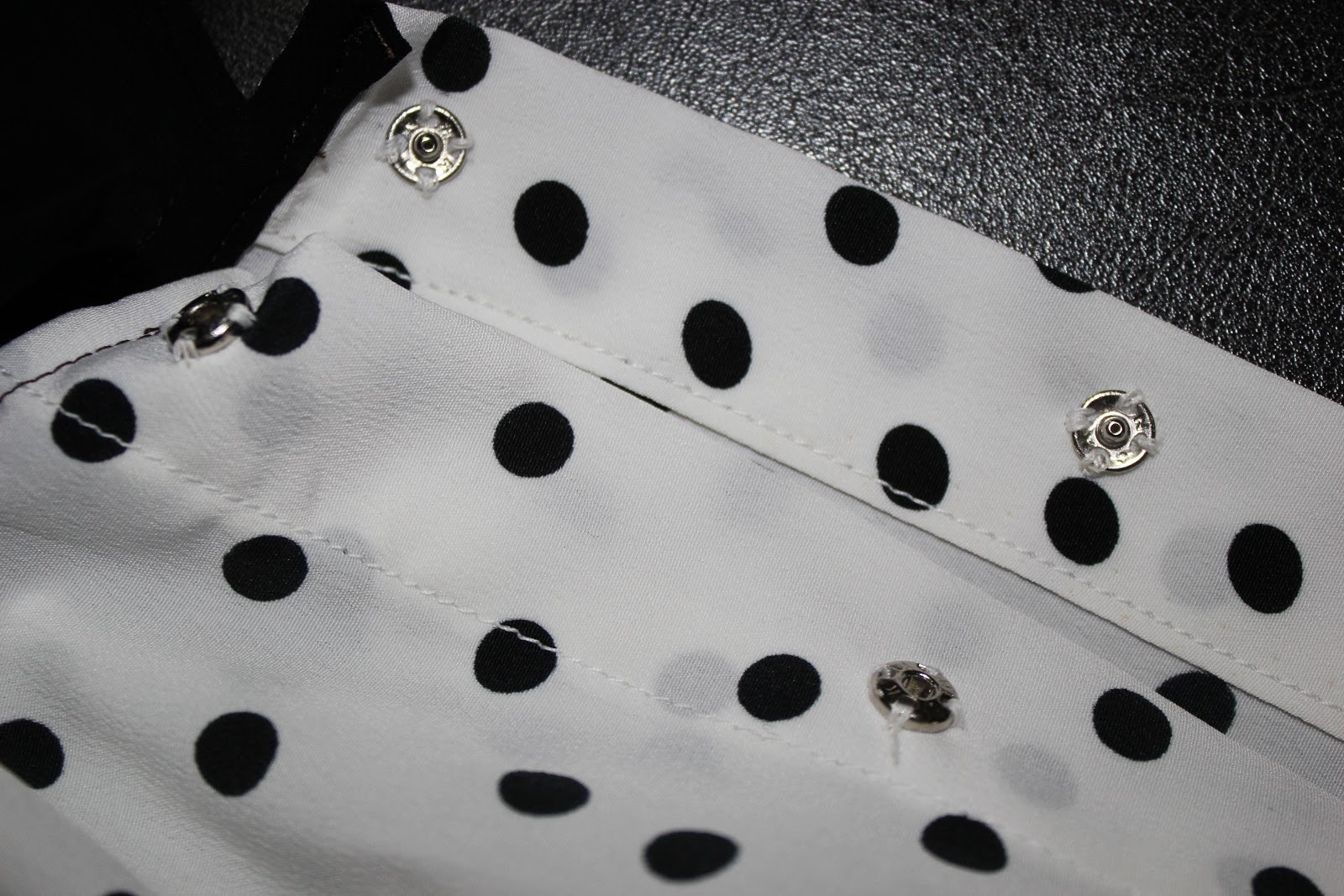 Para cerrar la camiseta puedes ponerle 6 cierres automáticos o botones.