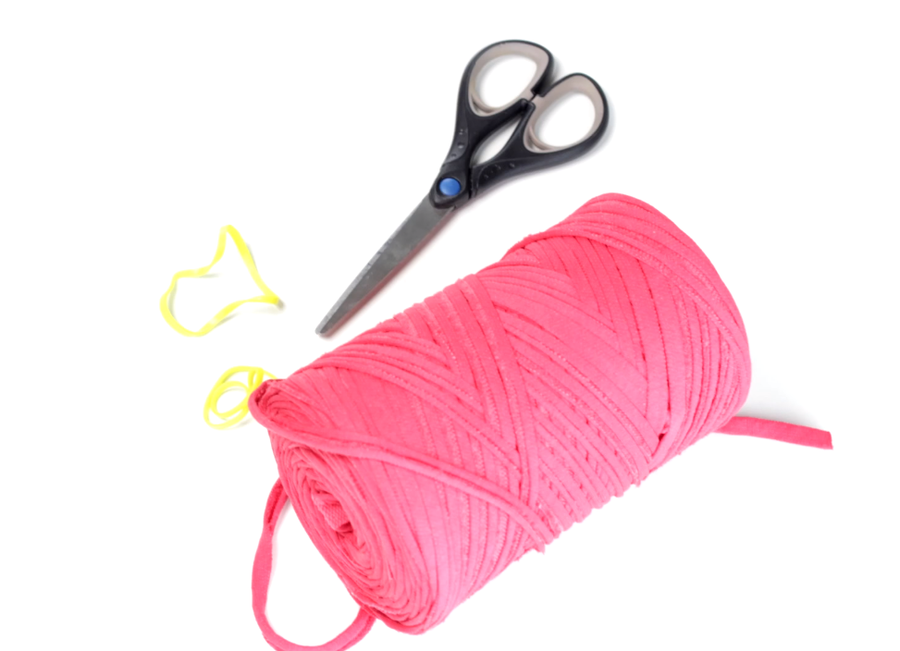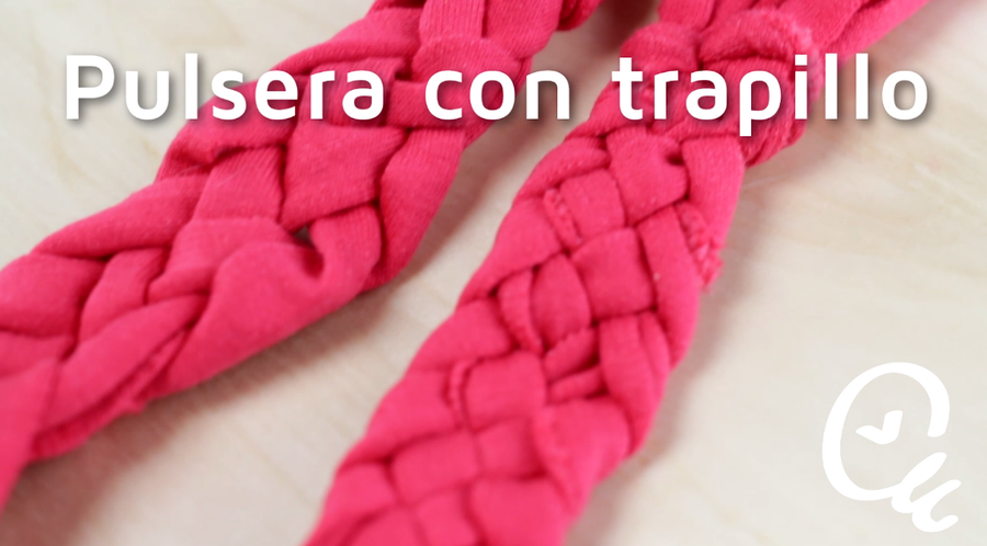 Esta pulsera de trapillo no está hecha con una trenza normal, sino que consiste en hacer un trenza de cinco cabos. Estos son los materiales que necesitarás: