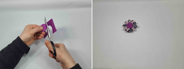 Cortamos el fieltro en forma de círculo y lo pegamos en la parte de atrás de la flor.