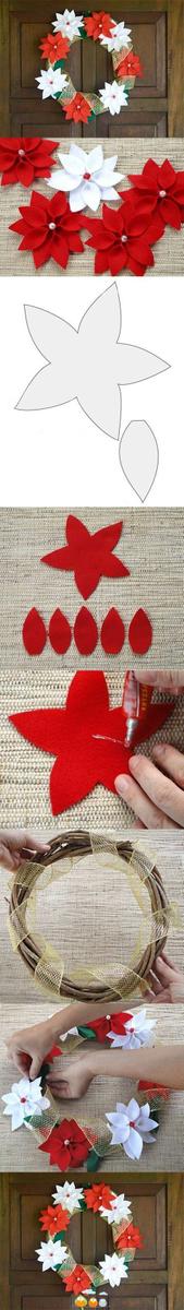 Con un poco de fieltro o también con papel podrás crear unas hermosas nochebuenas para utilizarlas en diversas decoraciones navideñas como coronas, colgantes, tarjetas, manteles, cojines, etc.