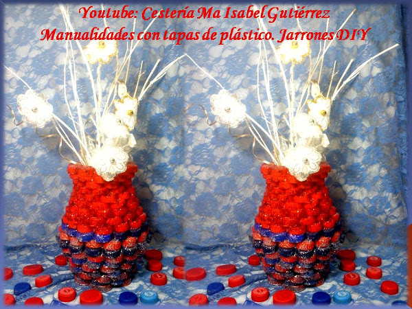 Hoy reciclamos tapitas de plástico que quedan de las botellas de jugos, refrescos o agua, para hacer, de manera muy fácil, y solamente con un material mas, estos lindos jarrones; verás que fácil es! y como siempre, también te comparto el paso a paso en vídeo, solo tienes que dar clic en la flecha de la imagen siguiente:Solamente necesitamos dos materiales:La cantidad de tapitas depende de lo gran ...