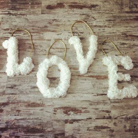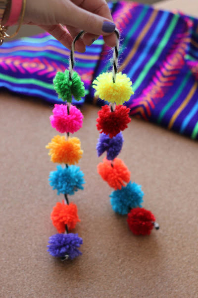 Haz varios pompones y luego, átalos a una tira larga de lana en otro color.