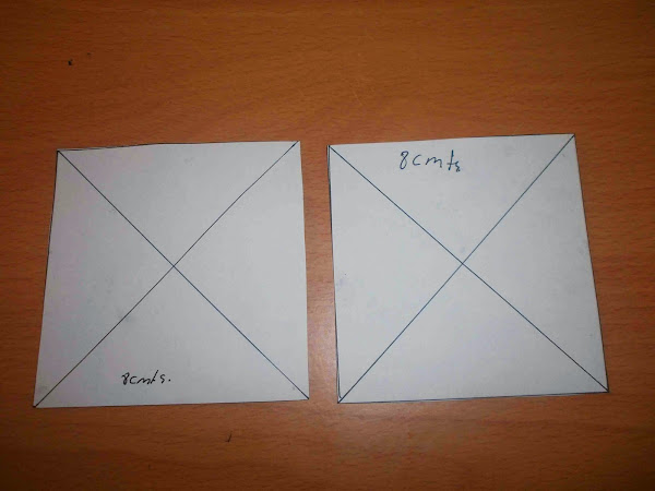 Y recorté por las cuatro lineas cruzadas en los dos papeles sin llegar a recortar hasta el centro.