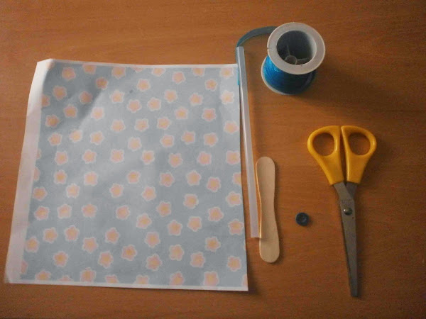 Materiales: Palo de helado, folio con un motivo que os guste, pegamento, silicona, regla, lápiz o boligrafo, botón, lazo, un brillante adhesivo.