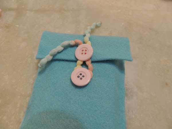 Con la lana hacemos como un lazo y pegamos en la parte de la tapa, en la parte de abajo pegamos el botón para que cuando se cierre se pueda enganchar.