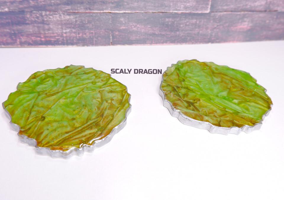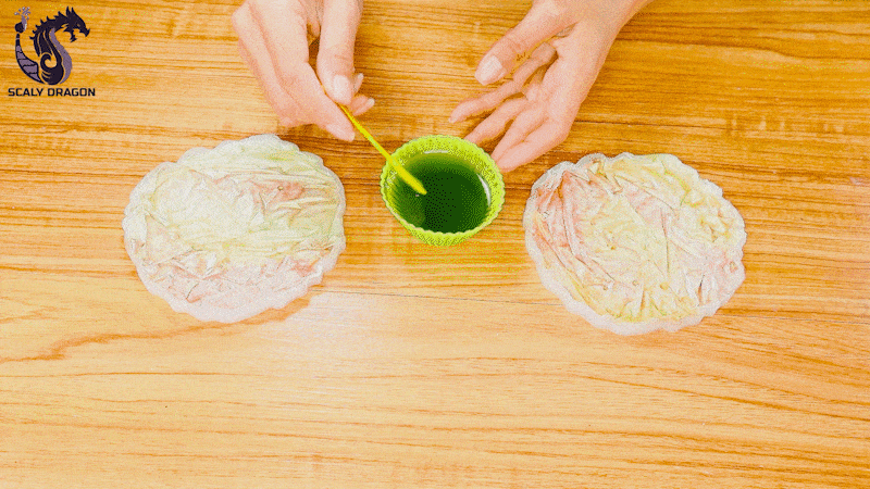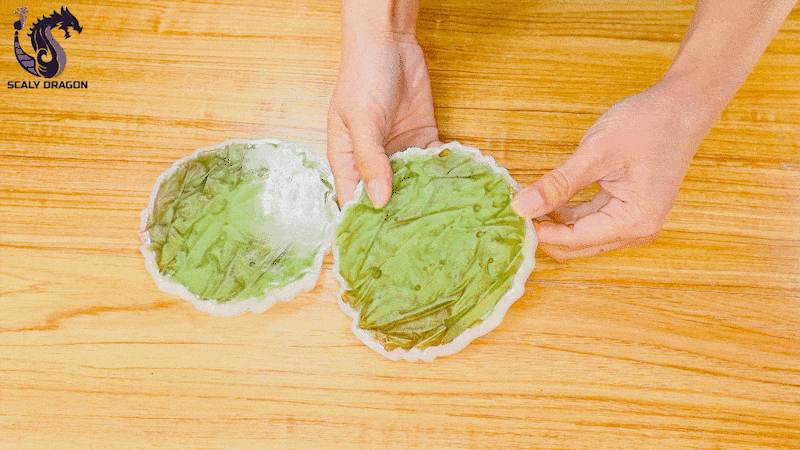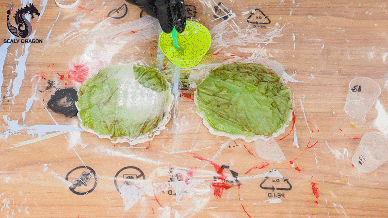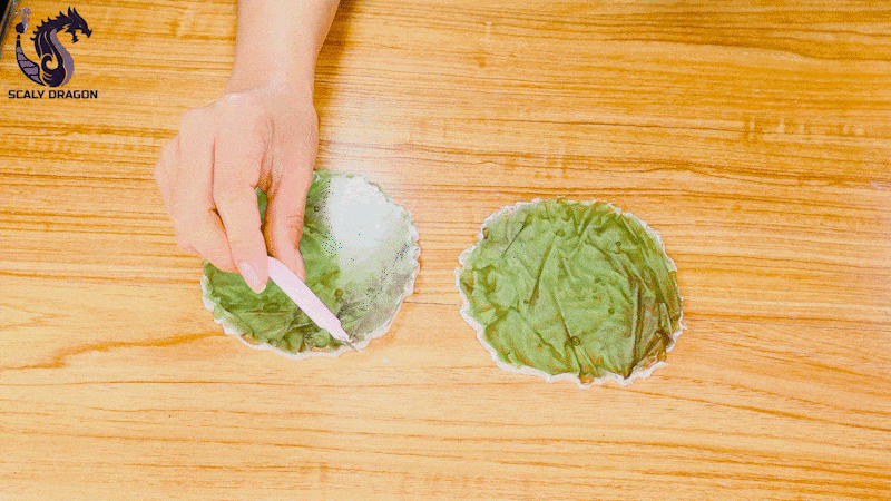 Una vez hecho esto procedemos hacer otras mescla de resina la cual teñiremos con los tintes vitral para resina en color verde o el color de tu preferencia.