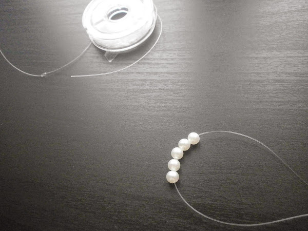 En primer lugar, tomé un trozo de hilo de nylon y le puse los primeros abalorios, los del principio son más pequeños que los abalorios rojos.
