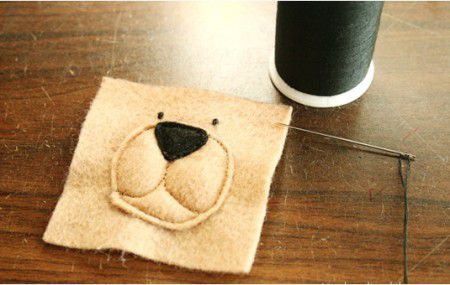 Para los ojos hacemos nudos franceses, cocemos las orejas en ambos lados.