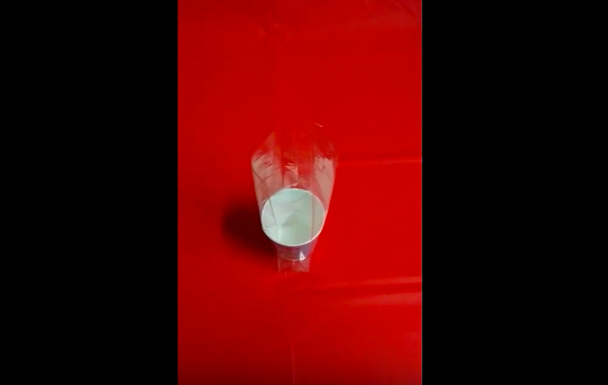1. Lo primero que tenemos que hacer es introducir una bolsita de plástico por fuera del vaso, de manera que nos quede todo el vaso cubierto de la bolsa.