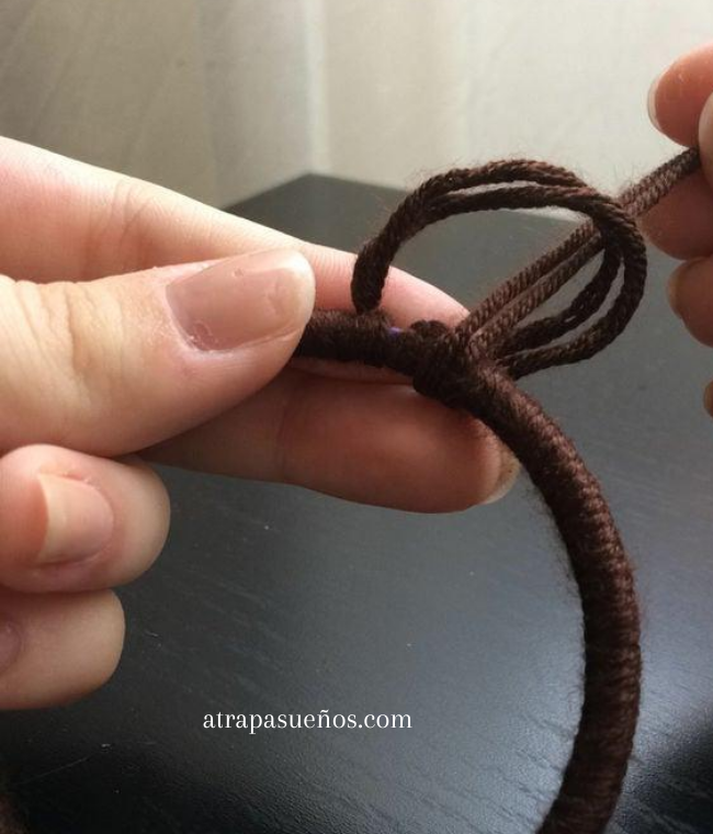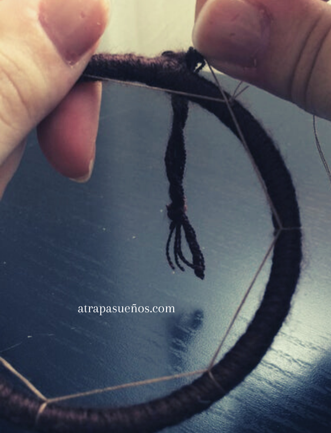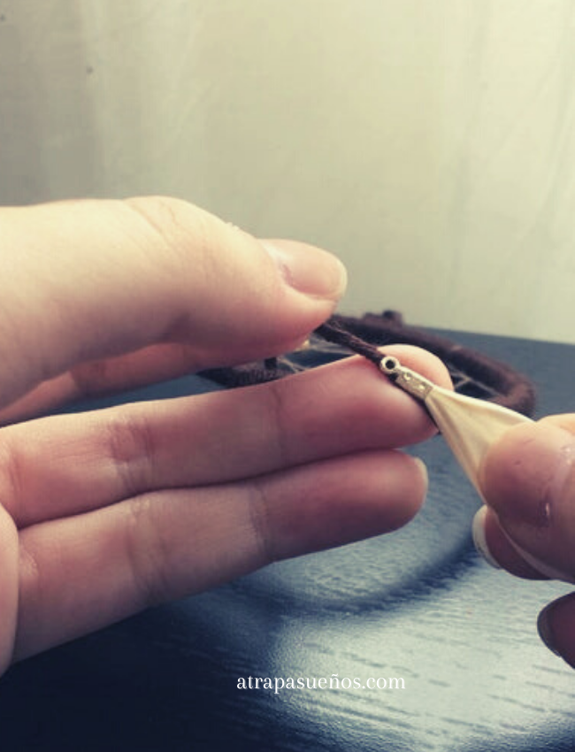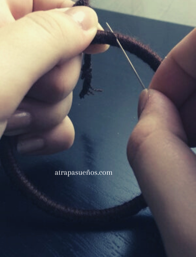 Una vez que llegues al final, aprieta bien la lana para que no se vea ningún hueco ni quede flojo. Que esté bien sujeto al aro.
